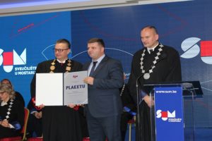 Plaketa kao znak zahvalnosti i priznanja za izniman doprinos razvoju Sveučilišta u Mostaru, uručena je predsjedniku Vlade Hercegbosanske županije Ivanu Joziću na svečanoj sjednici Senata koja je održana jučer povodom obilježavanja 41. obljetnice Sveučilišta u Mostaru.
