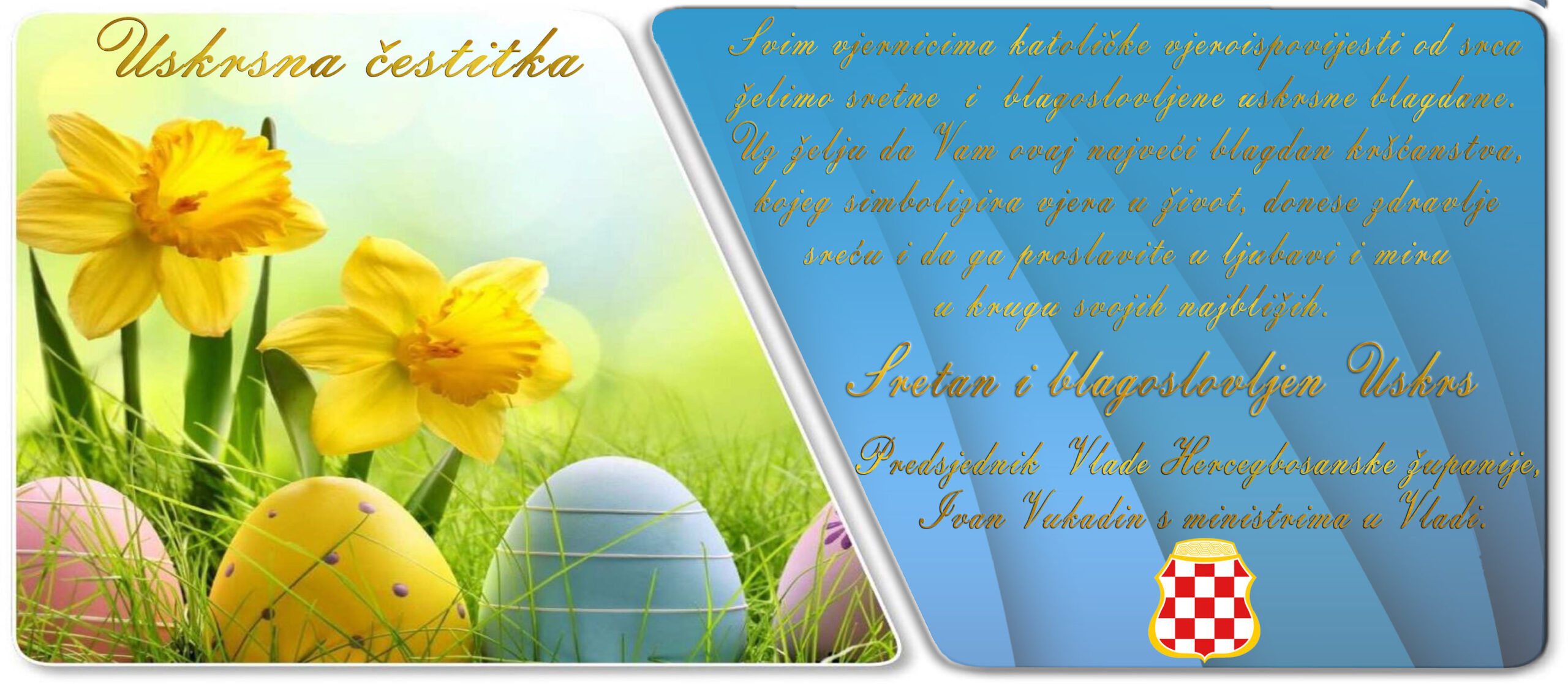 USKRSNA ČESTITKA Srijeda, 5.4.2023, 14:12|Novosti, Vlada| Podijeli na FacebookTwitterLinkedInWhatsAppTumblr